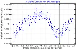 36 Aurigae was discovered to be a variable star when the Hipparcos data was analyzed. Because of that, it was given its variable star designation in 1999.[10]