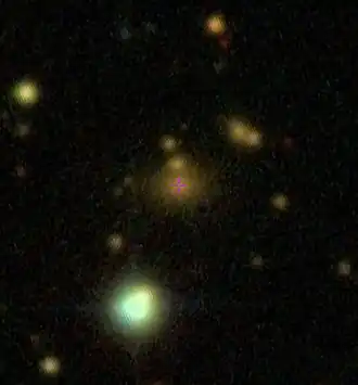 | Distance | 2.348 billion light-years (720 megaparsecs)h−1 0.73 |