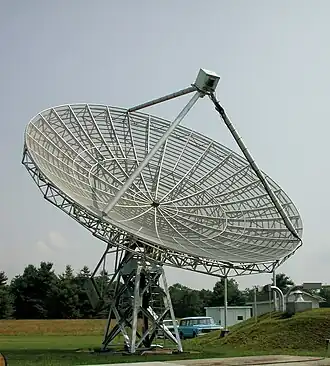 The 40-foot was ordered in 1961 from Antenna Systems.[1] It was delivered to Green Bank Observatory in December 1961,[4] and took two days to assemble. Its first light was on 14 December 1961. The original control system was constructed by the National Radio Astronomy Observatory (NRAO). On 1 February 1962, it became the first telescope to be fully automated,[1][5] ahead of the automation of optical telescopes like that at Washburn Observatory from the late 1960s onwards.[6] It was used to survey a number of variable radio sources from 1962 until 1968.[2]: 2