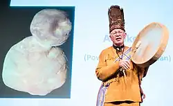 With the permission of the elders of the Pamunkey Indian Tribe of the Powhatan nation, the name Arrokoth was proposed to the IAU and formally announced by the New Horizons team in a ceremony held at the NASA Headquarters in the District of Columbia on 12 November 2019.[36] Prior to the ceremony, the name was accepted by the IAU's Minor Planet Center on 8 November, and the New Horizons team's naming citation was published in a Minor Planet Circular on 12 November.[37]
