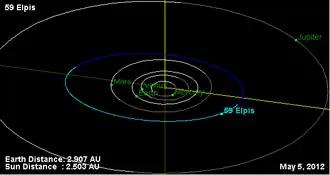 - 1 2 3 4 5 "JPL Small-Body Database Browser: 59 Elpis" (2011-09-01 last obs). Jet Propulsion Laboratory. Retrieved 26 January 2012.
