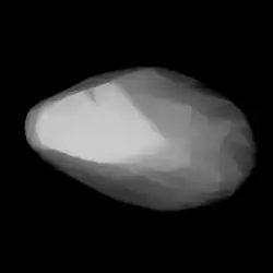 Published in 2014, a modeled lightcurve gave a period 4.273715 hours, as well as a two spin axes of (110.0°, −60.0°) and (290°, −60.0°) in ecliptic coordinates (λ, β).[8] In 2017, modelling gave a period of 4.2737137 h and a single spin axis of (124°, −87.0°),[5] refining a previously published result of 4.27371 h and (4°, −76.0°).[7]