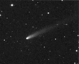 60P/Tsuchinshan, also known as Tsuchinshan 2, is a periodic comet in the Solar System with an orbital period of 6.79 years.[5] Tsuchinshan is the Wade-Giles transliteration corresponding to the pinyin Zǐjīn Shān 紫金山, which is Mandarin Chinese for "Purple Mountain".