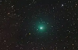 It was also observed in 1981, 1991, 2000, 2009 and 2018. The 2018 apparition was the most favourable, with the comet reaching a peak magnitude of 9. It had its closest approach to the Earth on 28 October 2018, at a distance of 0.445 au.[5] The comet had four outbursts. The brightest was on August 14, during which the comet brightened 2.7 magnitudes.[6]