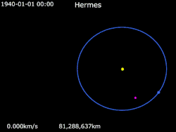Animation of 69230 Hermes's orbit - close approach in 1942