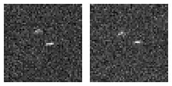 Arecibo radar image from 19 October 2003, showing the relative motion of the components.[9]
