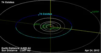 - ↑ Yeomans, Donald K., "74 Galatea", JPL Small-Body Database Browser, NASA Jet Propulsion Laboratory, retrieved 30 March 2013.