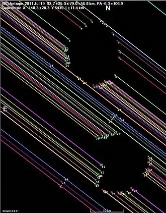 - ↑ Antiope Occultation Yields Double Bonanza Archived 12 November 2013 at the Wayback Machine. Sky & Telescope