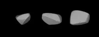 Another published measurement by the WISE team also gives a mean-diameters of 45.117±0.091 km with corresponding albedo of 0.045±0.005.[5][10] The Collaborative Asteroid Lightcurve Link adopts the results from IRAS, that is, an albedo of 0.0415 and a diameter of 47.08 km based on an absolute magnitude of 10.71.[10] An asteroid occultation on 15 August 2006, gave a best-fit ellipse dimension of 47.0 × 47.0 kilometers.[5] These timed observations are taken when the asteroid passes in front of a distant star. However the quality of the measurement is poorly rated.[5]
