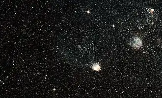 - ↑ Lindsay EM (1958). "The cluster system of the Small Magellanic Cloud". Monthly Notices of the Royal Astronomical Society. 118 (2): 172–182. Bibcode:1958MNRAS.118..172L. doi:10.1093/mnras/118.2.172.