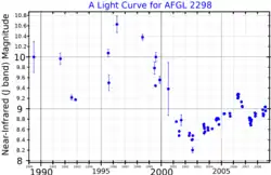 - 1 2 3 4 5 6 7 8 9 Clark, J. S.; et al. (2009). "Bolometric luminosity variations in the luminous blue variable AFGL2298". Astronomy and Astrophysics. 507 (3): 1555–1565. arXiv:0909.4160. Bibcode:2009A&A...507.1555C. doi:10.1051/0004-6361/200912358. S2CID 119187994.