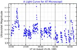 - ↑ Andrews, A. D. (January 1990). "Investigation of micro-flaring and secular and quasi-periodic variations in dMe flare stars. III. Micro-variability of AT MIC following a stellar flare". Astronomy and Astrophysics. 227: 456–464. Bibcode:1990A&A...227..456A. Retrieved 27 January 2022.