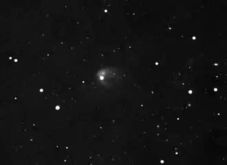 P/2013 R3 (Catalina–PanSTARRS) was discovered independently by two observers by Richard E. Hill using the Catalina Sky Survey's 0.68-m Schmidt telescope and by Bryce T. Bolin using the 1.8-m Pan-STARRS1 telescope on Haleakala.[14] The discovery images taken by Pan-STARRS1 showed the appearance of two distinct sources within 3" of each other combined with a tail enveloping both sources. In October 2013, follow-up observations of P/2013 R3, taken with the 10.4 m Gran Telescopio Canarias on the island of La Palma, showed that this comet was breaking apart.[15] Inspection of the stacked CCD images obtained on October 11 and 12 showed that the main-belt comet presented a central bright condensation that was accompanied on its movement by three more fragments, A, B, C. The brightest A fragment was also detected at the reported position in CCD images obtained at the 1.52 m telescope of the Sierra Nevada Observatory in Granada on October 12.[15]