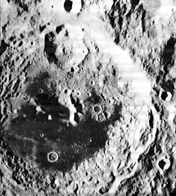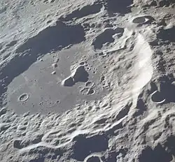 Aitken was a target of observation on Apollo 17 due to the command module's orbit passing directly over it.[3] The crew had a photograph of Aitken from Zond 8 with instructions to examine the interior of the crater with emphasis on albedo, textures, and structures of the dark floor fill, the nature of light swirls in the southwest quadrant of the floor, and structures and rock exposures on the central peak, and possible "lava marks."