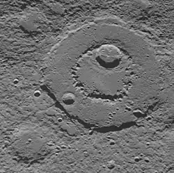 - ↑ Chapman, C. R., Baker, D. M. H., Barnouin, O. S., Fassett, C. I., Marchie, S., Merline, W. J., Ostrach, L. R., Prockter, L. M., and Strom, R. G., 2018. Impact Cratering of Mercury. In Mercury: The View After MESSENGER edited by Sean C. Solomon, Larry R. Nittler, and Brian J. Anderson. Cambridge Planetary Science. Chapter 9.