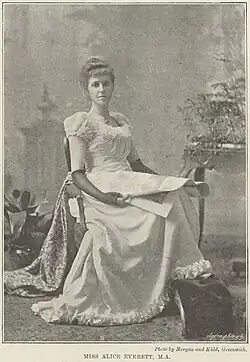 Alice Everett (15 May 1865 – 21 July 1949)[1] was a British astronomer and engineer who grew up in Belfast.[2] Everett is best known for being the first woman to be paid for astronomical work at the Royal Observatory, Greenwich, when she began her employment at the observatory January 1890. In 1903 she was the first woman to have a paper published by the Physical Society of London.[1] She also contributed to the fields of optics and early television.[3][4][5]