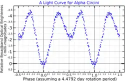 - 1 2 Bruntt, H.; et al. (June 2008), "The fundamental parameters of the roAp star α Circini", Monthly Notices of the Royal Astronomical Society, 386 (4): 2039–2046, arXiv:0803.1518, Bibcode:2008MNRAS.386.2039B, doi:10.1111/j.1365-2966.2008.13167.x, S2CID 13859127