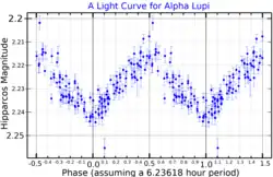- ↑ "V* alf Lup -- Variable Star of beta Cep type", SIMBAD, Centre de Données astronomiques de Strasbourg, retrieved 2009-10-26