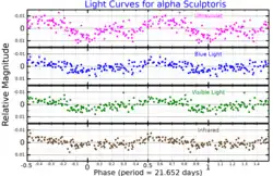 - ↑ Schmitt, A. (March 1973). "The weak-helium-line star α Sculptoris. I. The line-spectrum". Astronomy and Astrophysics Supplement. 9: 427. Bibcode:1973A&AS....9..427S.