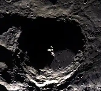 Amundsen is a large lunar impact crater located near the south pole of the Moon, named after the Norwegian explorer Roald Amundsen. It lies along the southern lunar limb, and so is viewed from the side by an observer on the Earth. To the northwest is the crater Scott, a formation of similar dimensions that is named for another Antarctic explorer. Nobile is attached to the western rim.[1]