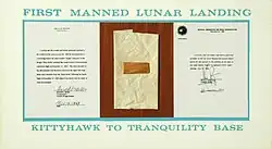 - ↑ Jones, Eric; Lotzmann, Ulli; Glover, Ken; Needell, Allan (January 6, 2016). "Lunar Surface Flown Apollo 11 Artifacts From the Neil Armstrong Estate". Apollo Lunar Surface Journal. Archived from the original on November 11, 2020. Retrieved July 19, 2019.