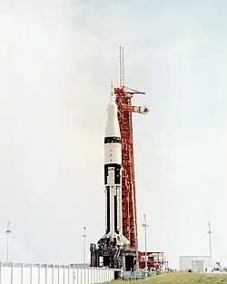 Apollo 7, the first crewed American space flight in 22 months, launched from Launch Complex 34 at 11:02:45 am EDT (15:02:45 UTC) on Friday, October 11, 1968.[38][55]