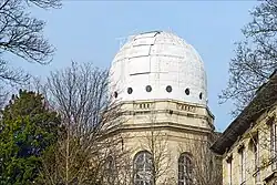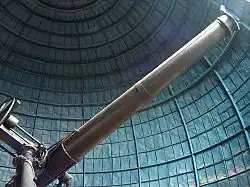 Arago telescope (Lunette Arago) is a 38 cm (15 inch) aperture refracting telescope at Paris Observatory, installed in 1857.[1] Francois Arago ordered this telescope from the telescope making firm Lebreours in 1839, and after a protracted development was completed by 1855.[2] The name Lunette Arago (Arago refractor) is a modern name for the telescope, and other large refractor of Paris observatory, is the one at Meudon.[3] It has gone by a variety of names having to do with various aspects of the telescope, such as its aperture, or location on the East tower of the Paris observatory, or its equatorial mount made by Brunner.[4] In one journal report it was called the 'east equatorial' for example, in another instance '38 cm refractor'.[5][6] In French language it has been called the La lunette équatoriale de 38 cm de l'Observatoire de Paris.[7]