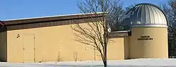 Built in 1983, the observatory originally consisted of two domes connected by a small room. Each dome houses a 16 inch aperture telescope, and can accommodate about one dozen people. In 2002 a 30 by 30 foot classroom was added to the building's north side, allowing for public presentations to groups of up to 50 visitors. The classroom was badly damaged by the August 2020 Midwest derecho, and is being extensively renovated.
