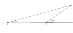 In the diagram above, let be the sun, be the center of the circular orbit, and be the equant point. The points and are the perihelion and aphelion respectively. Let be the position of Mars at a particular observation. The angle Kepler refers to as the true anomaly, and the angle the mean anomaly. For any observation, the true anomaly could be deduced if we knew the longitude of aphelion, by finding the difference between this and the longitude of the observation. The mean anomaly could be deduced if we knew the time when Mars it at aphelion, and by using the fact the Mars, viewed from the equant, traverses equal angles in equal times. If the true anomaly and the mean anomaly were known, we could likewise determine the location of the point by finding where the lines drawn from and intersect. For the purposes of calculation, we can take the length of the line to be .