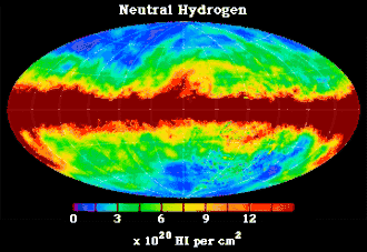 Map of the column density of Galactic neutral hydrogen in the same projection as the 0.25 keV SXRB. Note the general negative correlation between the 0.25 keV diffuse X-ray background and the neutral hydrogen column density shown here.