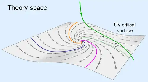 - ↑ The contact to perturbation theory is established in: Niedermaier, Max (2009). "Gravitational Fixed Points from Perturbation Theory". Physical Review Letters. 103 (10): 101303. Bibcode:2009PhRvL.103j1303N. doi:10.1103/PhysRevLett.103.101303. PMID 19792294.