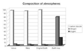 Comparison of Atmosphere Compositions – Venus, Mars, Earth (past and present).