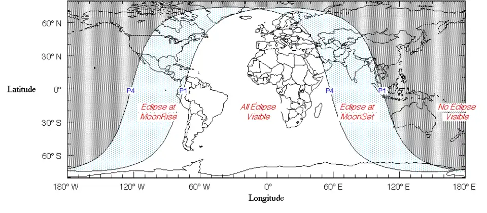 The eclipse was completely visible over South America, Africa, and Europe, seen rising over much of North America and setting over central and south Asia.[3]