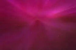 First reported in 2020,[42][43] and confirmed in 2021,[44][45] the dune aurora phenomenon was discovered[46] by Finnish citizen scientists. It consists of regularly spaced, parallel stripes of brighter emission in the green diffuse aurora which gives the impression of sand dunes.[47] The phenomenon is believed to be caused by the modulation of atomic oxygen density by a large-scale atmospheric wave travelling horizontally in a waveguide through an inversion layer in the mesosphere in presence of electron precipitation.[44]