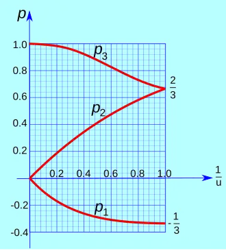 All different values of p1, p2, p3 ordered as above are obtained with u running in the range u ≥ 1. The values u < 1 are brought into this range according to