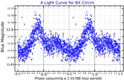 {{cite journal}}: CS1 maint: numeric names: authors list (link) - 1 2 3 4 "V* BX Cir". SIMBAD. Centre de données astronomiques de Strasbourg. Retrieved 4 August 2019.