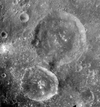 ![]() Apollo 16 Mapping Camera image of Schubert crater (above right of center) and Back crater (below left of center) | |