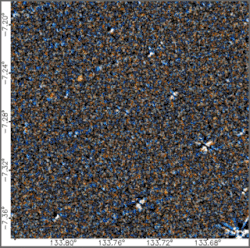 Citizen scientists accessing the website search through a flip book-style animation of specially-processed mid-infrared images captured by WISE known as unWISE coadds,[6] taken with filters at the wavelengths of 3.4 and 4.6 micrometers. The coadded unWISE images permits fainter objects to be detected than previous processing of WISE imagery allowed. In the flip books these coadds are differenced, a process designed to remove most of signal from stationary objects, leaving moving objects intact.[7] The aim is to identify points of light that move between the flip book frames, including slower-moving "dipoles". Citizen scientists who spot a moving object are encouraged to fill out a "Think You've Got One" form which the project scientists review to confirm if there is motion. The images contain instrumental artifacts and are noisy, which hampers the use of automated image processing software and makes the task ideal for exploiting human visual recognition capabilities.[1][2] Additionally, to improve the ability to detect objects some participants have created their own tools such as Wiseview, a web-based animation visualization tool.[8]