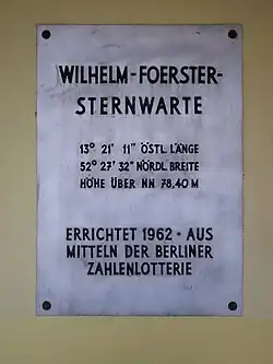 - ↑ "Wilhelm-Foerster-Sternwarte mit Zeiss-Planetarium am Insulaner" (in German). 2015-09-23. Retrieved 2022-07-26.