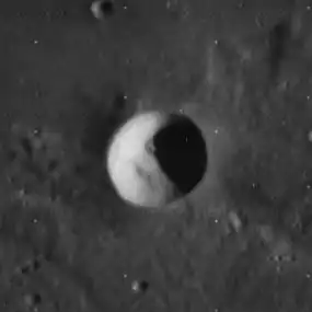 Bancroft is a small, bowl-shaped impact crater located to the southwest of Archimedes on the Mare Imbrium. A wide, shallow depression runs from the rim of Bancroft southeast to the Montes Archimedes. There are some clefts at the edge of the mare to the west and southwest of the crater. Other prominent craters are two small craters nearly to the west named Feuillée and Beer.