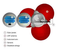- Deadbeat airbags, which inflate just before touch-down, and gently deflate during landing, so that the probe could come to a stop where it lands, and not bounce to a stop.