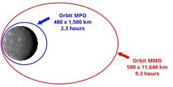 ![]() Artist's depiction of the BepiColombo mission, with the Mercury Planetary Orbiter (left) and Mercury Magnetospheric Orbiter (right) | |