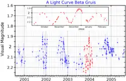 - 1 2 3 4 5 Otero, S. A.; Moon, T. (December 2006), "The Characteristic Period of Pulsation of β Gruis", The Journal of the American Association of Variable Star Observers, 34 (2): 156–164, Bibcode:2006JAVSO..34..156O