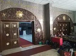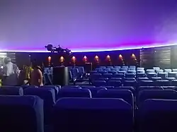 The planetarium is equipped with a versatile opto-mechanical GOTO GM II starfield projector,[6] an accompanying special-effects projector and an X-Y table system for simulating various celestial phenomena. The GM II projector has the provision to execute the diurnal, annual, latitudinal, and precessional motions. The pierced hemispherical inner dome of the planetarium, made of aluminium, is 15 m in diameter. The air-conditioned theatre has a seating capacity of 236.