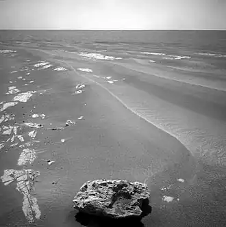 Block Island meteorite, officially[7] named Meridiani Planum 006 shortened as MP 006, was found on Mars by the Opportunity rover on July 17, 2009. It is about 67 centimetres (26 in) across.[1]