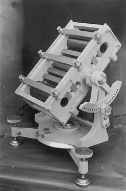 Just as Rossi left Eritrea, he received news of two observations of a similar east–west effect. These were published in the Physical Review. One was by Thomas H. Johnson,[24] and the other was by Compton and his student, Luis Alvarez, who reported observations at Mexico City, where the latitude is 19° N.[25] Because others had carried out the first experimental exploitation of his important idea of 1930, Rossi was disappointed, but published his results immediately after returning to Padua.[26] Later, with Frederick C. Chromey, Alvarez and Rossi patented a "Vertical Determination Device", which made use of cosmic ray telescopes.[27]