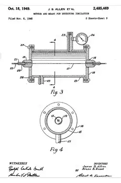- ↑ Allen, James S.; Bruno B. Rossi (6 November 1946). "Method And Means For Detecting Ionization". Patent number: 2485469. US Patent and Trademark Office. Retrieved 19 January 2013.