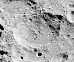 Buisson is a lunar impact crater that is located on the far side of the Moon. It is named after the French physicist Henri Buisson.[1] Nearly attached to the southeast rim is the crater Vesalius. To the southwest is Einthoven. The rim of this crater is somewhat worn, and is lowest in the north. There is a low central ridge across the midpoint.
