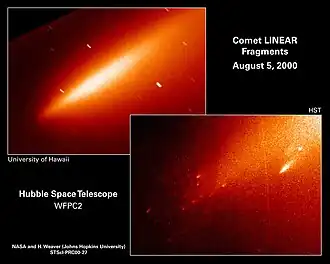 6. D. Weaver; M. Purdy (28 July 2000). "Hubble Sees Comet Linear Blow its Top". HubbleSite.org (Press release). Archived from the original on 21 September 2007. Retrieved 4 September 2011.