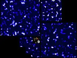 ![]() Dark matter map from 2012 by CFHT Lensing Survey (CFHTLenS).[11][12] The central colour inset shows the previous largest COSMOS dark matter map |